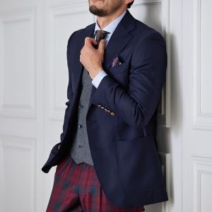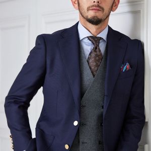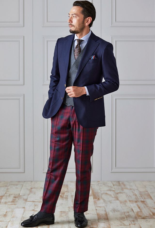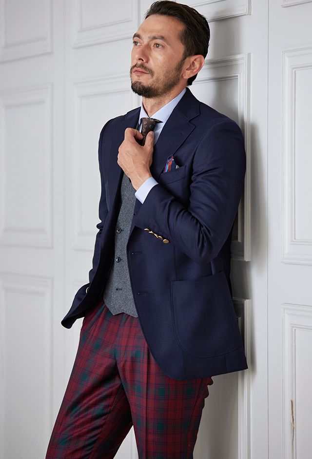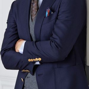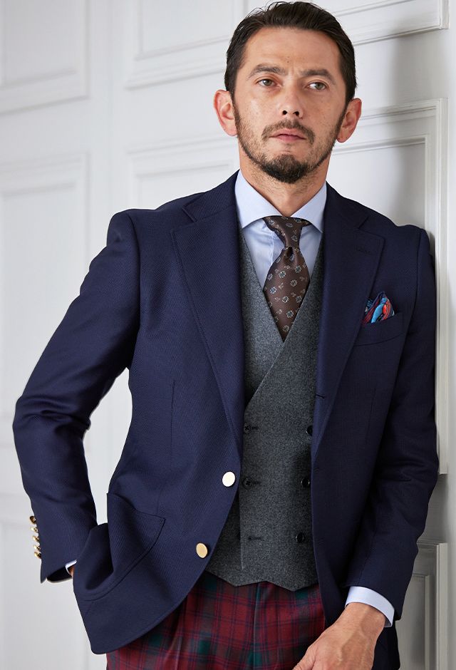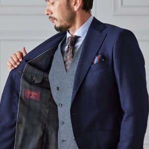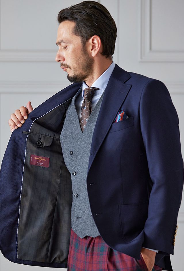 イタリアの高級生地ブランド「クロス エルメネジルド ゼニア」で仕立てたスーツです。シンプルな飽きのきにくいネイビーで、オールシーズンの生地になります。カイザーレジェロモデルで、一度羽織ると手放せなくなる軽い着心地を感じていただけます。メタルのボタンでジャケットらしい雰囲気に。2つボタンでシンプルな雰囲気なので、ビジネスでもカジュアルでも両方兼用できます。柄物とのアイテムとも相性が良いので、1着あると重宝します。