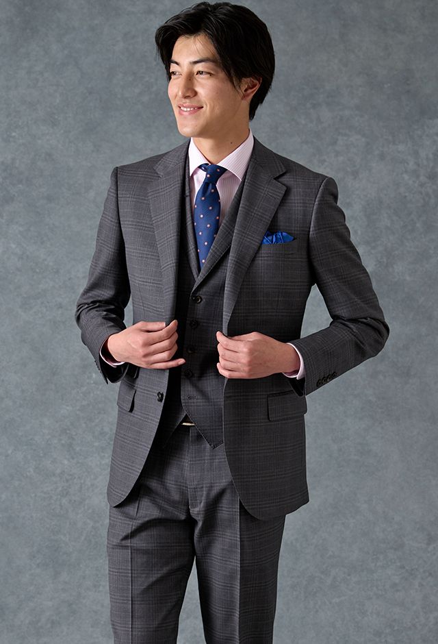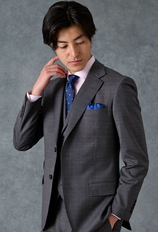 オーダースーツ専門店GlobalStyleで取り扱っている「グレースーツ・チェックのコーディネート(REDA)|3-706289-2」の紹介ページです。本格オーダースーツが1着2万円台~!約5,000種類の生地をリーズナブルな価格でご用意しております。