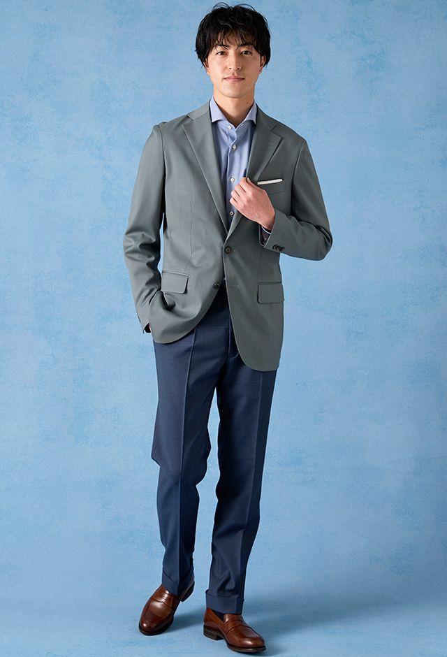 オーダースーツ専門店GlobalStyleで取り扱っている「グリーン・カーキジャケット&パンツ・無地のコーディネート(TRABALDO TOGNA)|90304U-1-1603(JP)」の紹介ページです。本格オーダースーツが1着2万円台~!約5,000種類の生地をリーズナブルな価格でご用意しております。